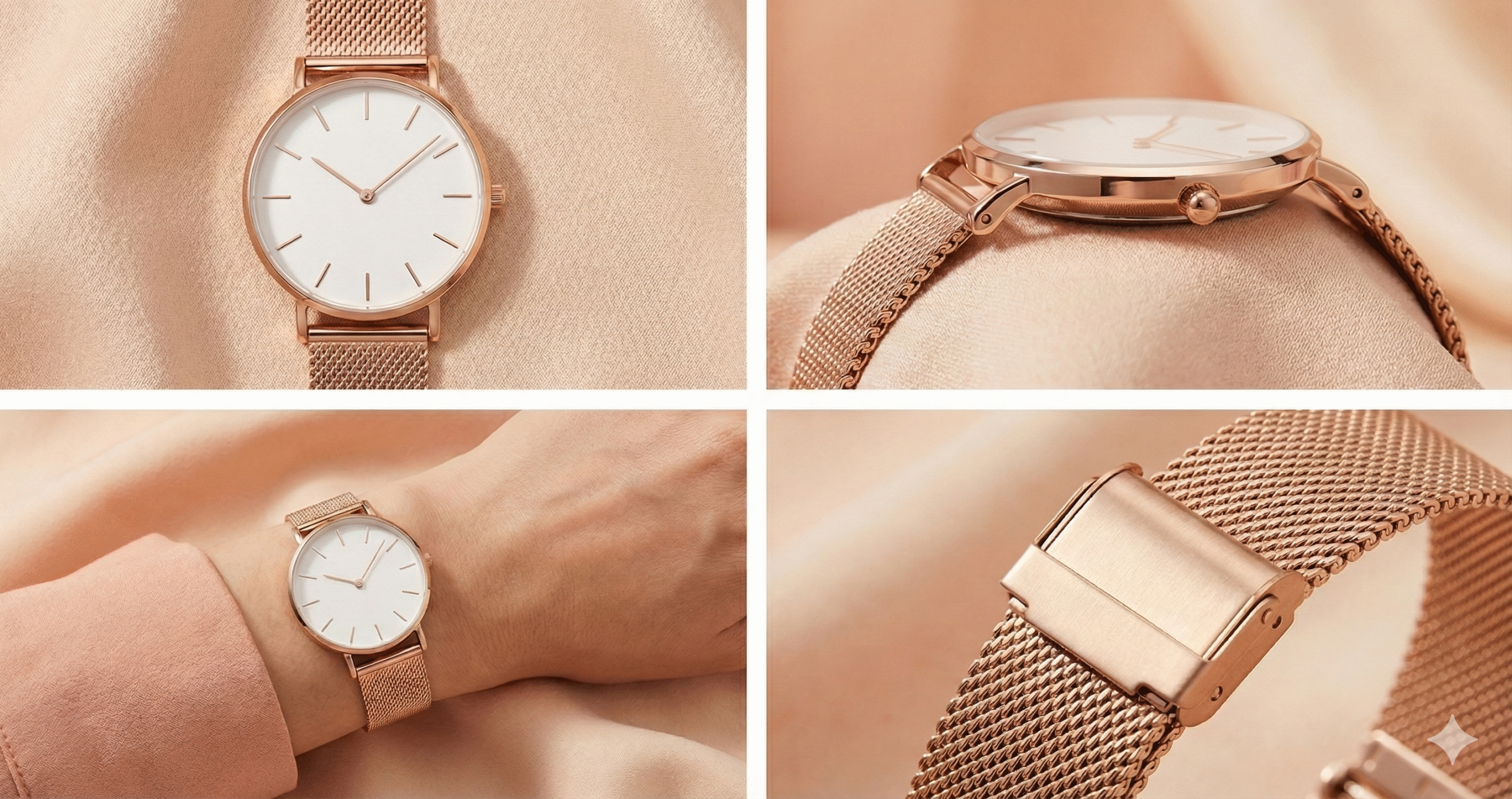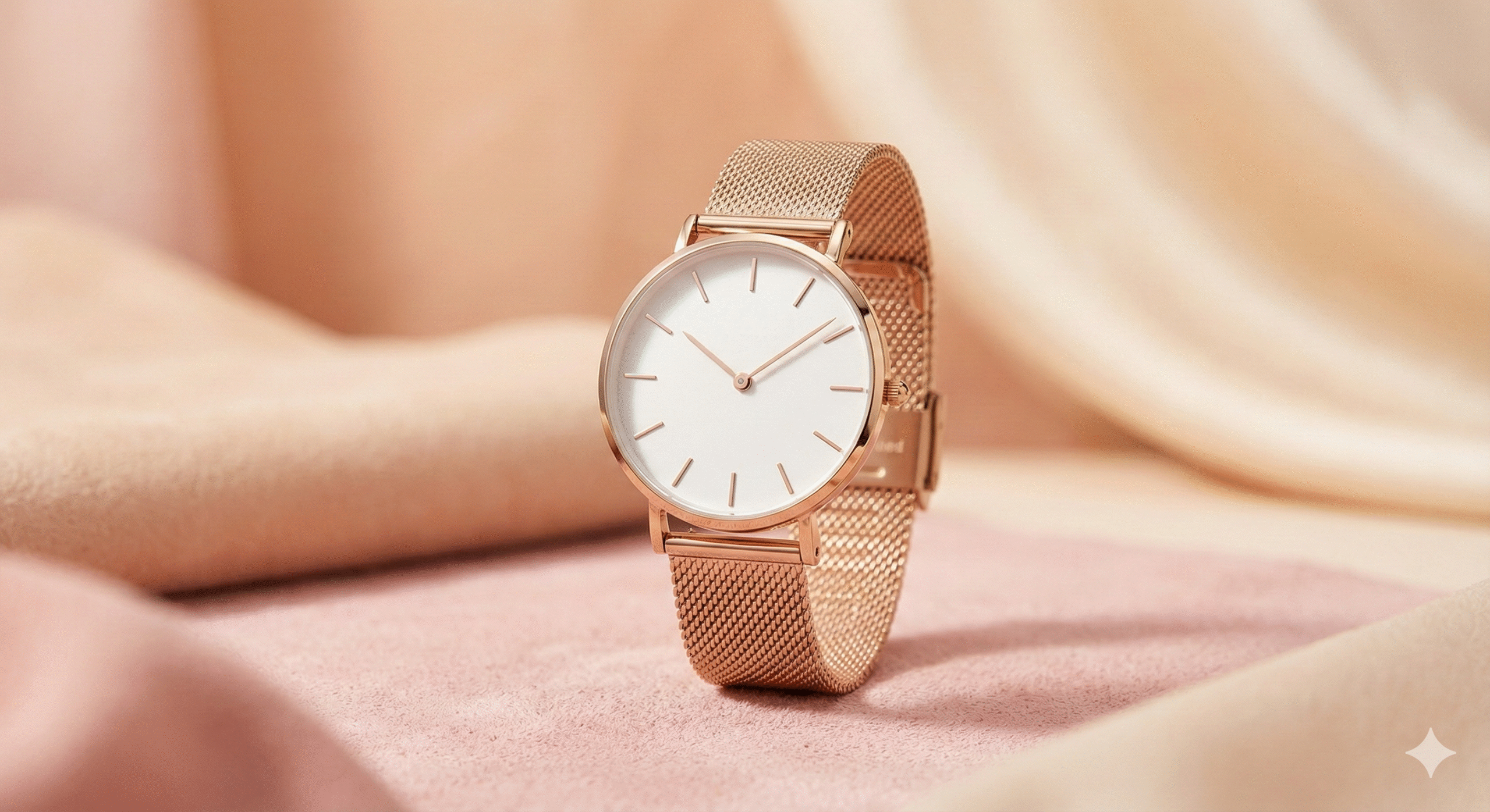 Comfortable Mesh Strap The watch is paired with a fluid Milanese-style mesh strap in matching rose gold. This stainless steel mesh is not only durable and resistant to tarnishing but also incredibly flexible, contouring perfectly to your wrist for all-day comfort. The easily adjustable sliding clasp ensures a customized fit for any wrist size.
